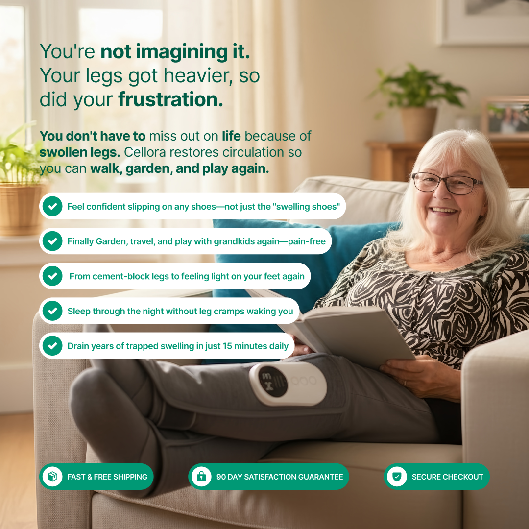 Cellora™ Doctor-Approved, Drug-Free Therapy Reactivates Your Body's Natural Calf Pump - So You Can Feel Lighter, Walk Stronger, And Slip Back Into Your Favorite Shoes.